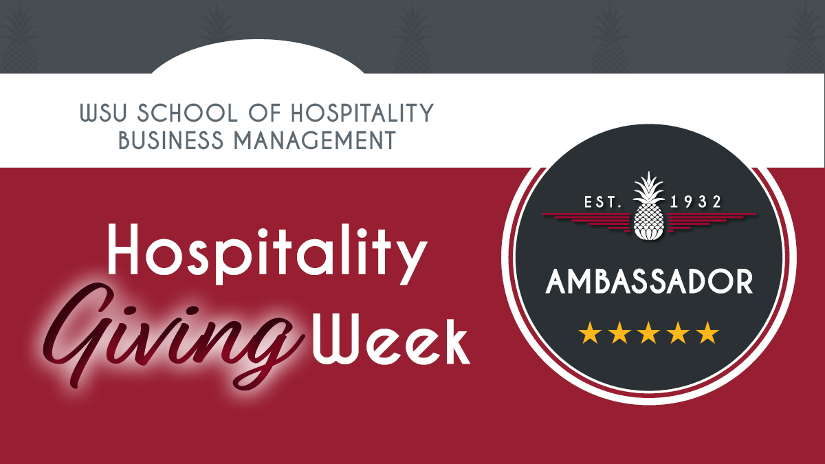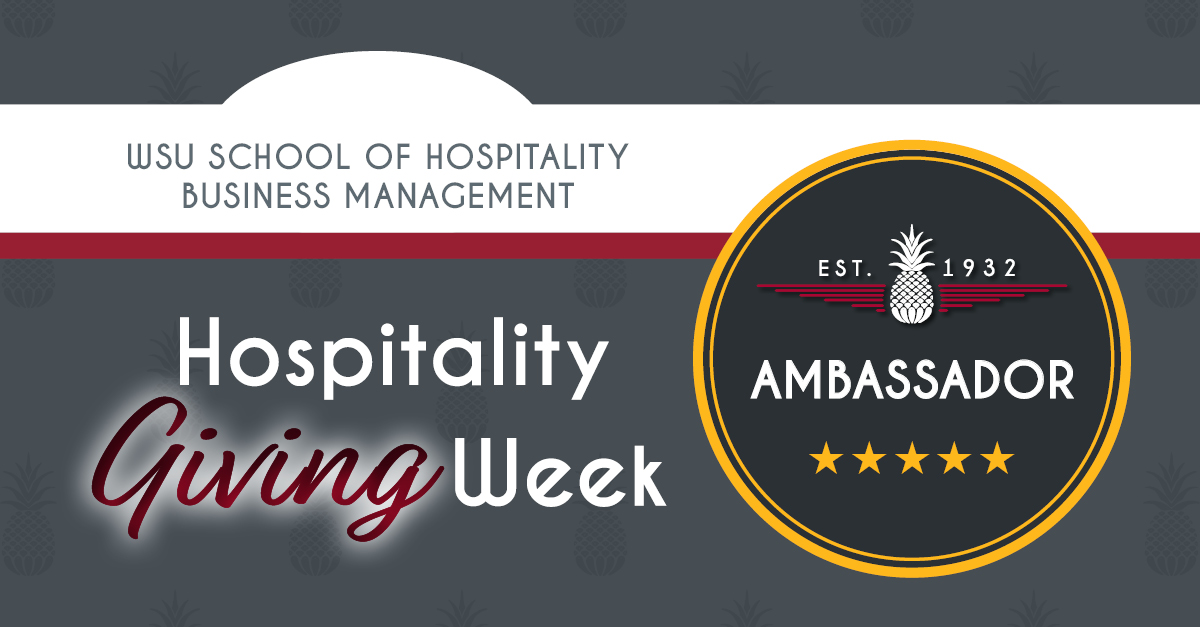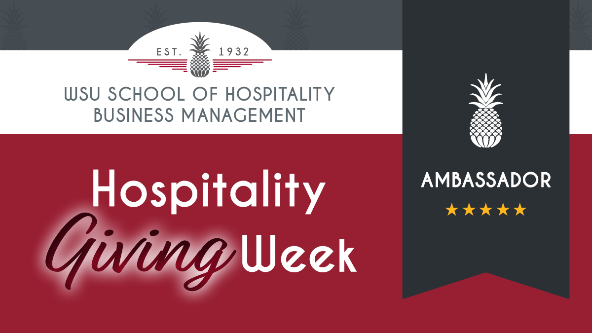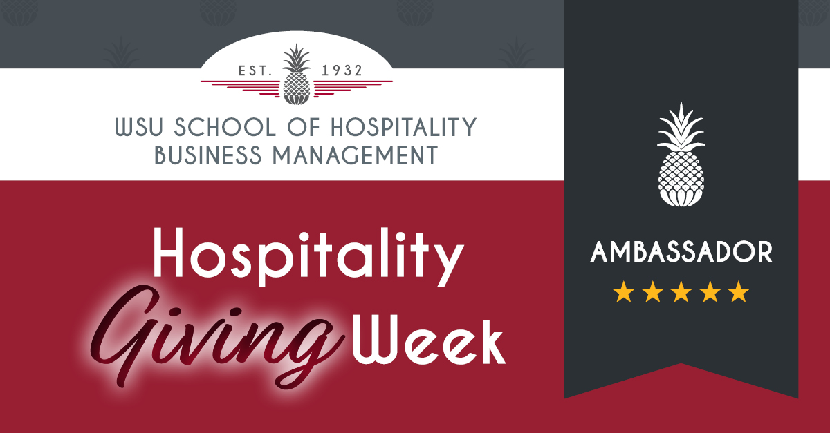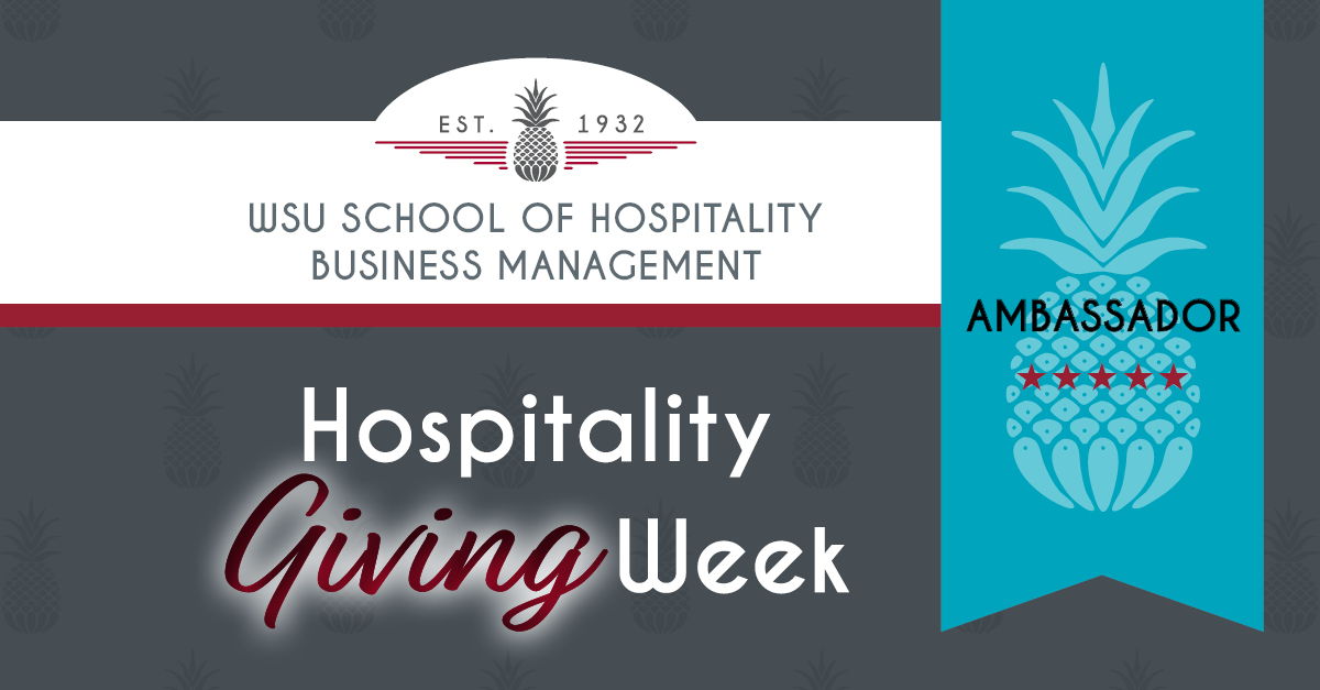 If you’re interested in being an official ambassador for Hospitality Giving Week, please go to cougstarter.wsu.edu/hbmgivingweek. Thank you for your support!
